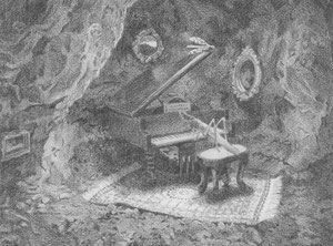 From October the 1st until November the 19th I will be exhibiting five pencil drawings in magical surrealist style at Library Zuilen, Utrecht. Included will be The Monster of the Wasteland, A Musical Evening at the Insect Cave, and more.