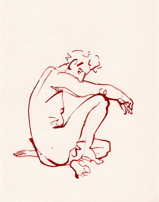 Poses of 3-10 minutes. Made with ink, charcoal and watercolor.